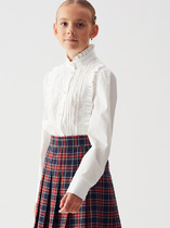 Очаровательная блузка для девочки. Выполнена из качественного материала. Модель приталенного силуэта, с длинными рукавами, воротником стойкой. Прекрасный вариант для школьных будней, так и для торжественных случаев. Материал: Вискозное полотно.Производство: Радуга-ДетиСостав: 93% вискоза,7% эластан.