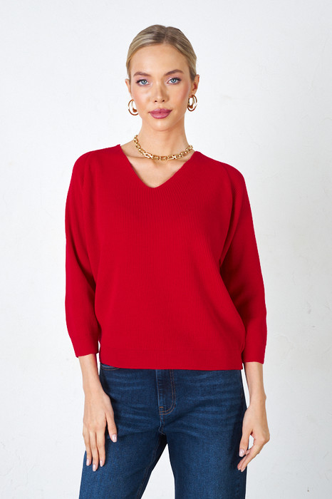 Джемпер прямого силуэта с фактурой «жемчужный узор». Рукав реглан. V-образный вырез горловины. Низ изделия и низ рукава оформлены резинкой. Изделие выполнено из мягкой структурированной пряжи.