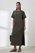 Платье приталенного силуэта из вискозной плательной ткани. Изделие отрезное по линии талии с защипами. В боковых швах карманы. Втачной короткий рукав. Притачная планка с застёжкой на пуговицы. Вырез горловины обработан отложным воротником на стойке. В комплекте пояс из основной ткани.