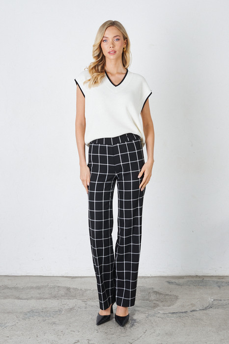 Брюки прямого силуэта из костюмной ткани. Пояс притачной с эластичной резиной.
