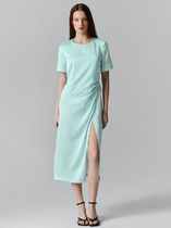 Платье из вискозной ткани с крэш-эффектом. Свободный силуэт с карманами в боковых швах. По центру передней и задней части изделия выполнен шов. Цельнокроеная стойка, переходящая в V-образный вырез горловины, визуально делает фигуру стройнее. Цельнокроеный короткий рукав. В комплекте пояс из основной ткани.
