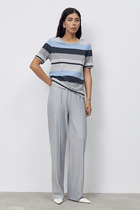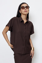 Платье прилегающего силуэта из вискозной ткани с сатиновым блеском. Крой платья по косой. Цельнокроеный короткий рукав. Круглый вырез горловины, сзади застёжка на петлю-пуговицу.