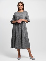 Джемпер свободного силуэта. Длинный рукав-реглан, чуть расширенный книзу. Круглый вырез горловины оформлен резинкой, низ изделия и низ рукава-высокой резинкой. Изделие выполнено из мягкой меланжевой пряжи.