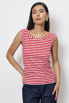 Топ из эластичного полотна полуприлегающего силуэта. Линия горловины и линия проймы окантованы эластичной бейкой.