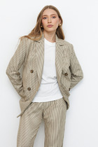Жакет выполнен из эластичного полотна. Изделие прямого силуэта с английским воротником, который визуально сделает фигуру стройнее и подчеркнет красивую линию груди. На передней части жакета застежка на пуговицу и накладные карманы. Втачной длинный рукав.