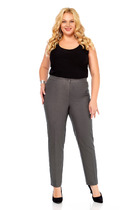 Брюки из эластичного полотна прямого силуэта. Пояс с эластичной резиной. На передней части брюк застрочены стрелки.