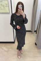 Платье из меланжевого эластичного полотна. Изделие свободного силуэта со спущенной линией плеча и длинным рукавом. Вырез горловины оформлен бейкой из основной ткани. В таблице размеров представлены параметры человека, а не изделия.