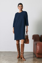 Джемпер из хлопкового эластичного полотна свободного силуэта. Втачной короткий рукав. Круглый вырез горловины оформлен бейкой.