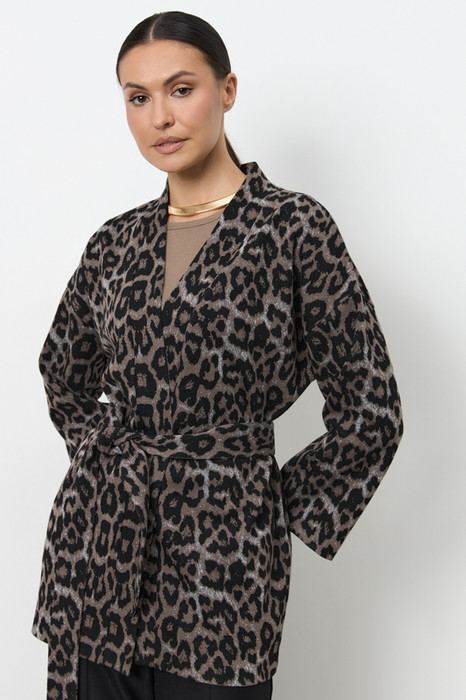 Кардиган из эластичного полотна. Свободный силуэт с притачной планкой. Втачной широкий рукав в спущенную пройму. В комплекте пояс, позволяющий создавать приталенный силуэт.