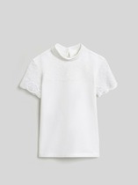 Школьная блузка для девочки. Актуального дизайна из качественного материала для девочки. Кокетка и рукава выполнены из мягкого гипюра.Прекрасный вариант для школьных будней, так и для торжественных случаев. Производство:Радуга-дети Материал: Вискозное полотно, гипюр. Состав: 93% вискоза,7% эластан., гипюр-100% п/э.
