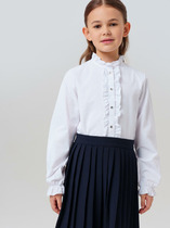 Школьная блузка для девочки. Актуальног дизайна. Выполнена из качественного материала.На полочке настрочены 2 ряда рюш из отделочной ткани. Модель с длинными рукавами.Прекрасный вариант для школьных будней, так и для торжественных случаев.Производство:Радуга-детиМатериал: Вискозное полотно, гофра. Состав: 93% вискоза,7% эластан, гофра - 100% п/э.