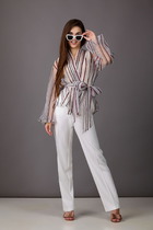 Состав: 92%Хлопок 8%ПУ (полиуретан)Футболка прямая с подплечником и широким плечом, декорированным пайетками.