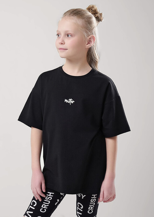 Базовая футболка оверсайз выполнена из эластичного хлопка. Модель дополнена стильным минималистичной силиконовой нашивкой. Создавай классные образы на каждый день, сочетая футболку с леггинсами и велосипедками из новой коллекции!