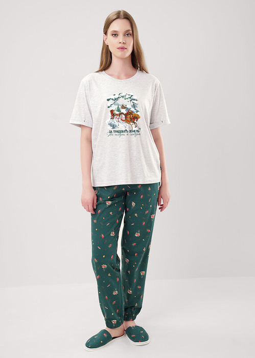 Совместные покупки Уфа Женская одежда Пижамы, халаты — Акция Clever Пижама женская CLE LP15-1201/2 меланж св.серый/т.зелёный
