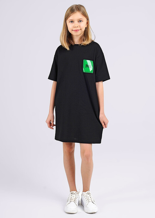 В эффектном платье с силиконовой нашивкой ты будешь в центре внимания! Прямой силуэт, спущенная линия плеча. Выполнено из мягкого пике - приятный материал идеально для жаркой погоды.
