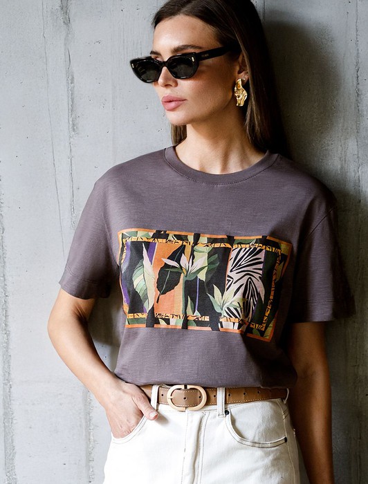 АКЦИЯ Футболка из фактурного полотна с авторским принтом