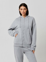 Джемпер женский свободного силуэта со спущенными плечами с капюшоном. По переду горизонтальные подрезы и застёжка на кнопки. По спинке кокетка. Рукава одно шовные втачные на манжете.