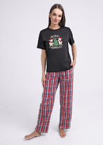 Костюм из трикотажного полотна «вельмонд двухсторонний » в комбинации двух видов: гладкокрашеного и с рисунком в узкую полоску в единой цветовой гамме, состоящий из джемпера и брюк. Джемпер – из гладкокрашеного полотна, с длинными втачными рукавами, горловиной овальной формы, обработанной втачной планкой из основного материала, разрезами в боковых швах и вышивкой на полочке. Брюки – длинные, прямые, с эластичной тесьмой по линии талии.