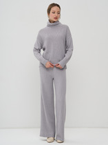 Брюки прямого свободного кроя с боковыми карманами из набивного трикотажа супрем.