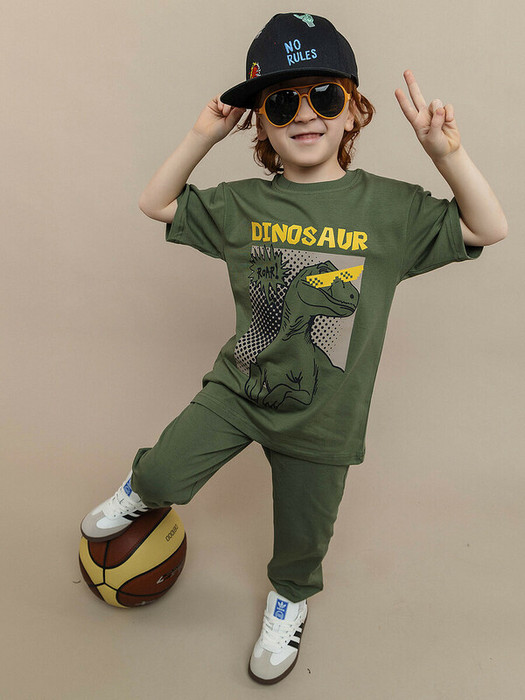 Футболка для мальчика зеленая для детей и подростков с коротким рукавом из супрема пенье. Круглая горловина, яркий принт с динозавром. Подойдет для повседневной носки и активного отдыха. Изготовлена из ткани высокого качества.Характеристики:Ткань: Супрем пенье 92% хлопок 8% эластанПроизводитель: batik