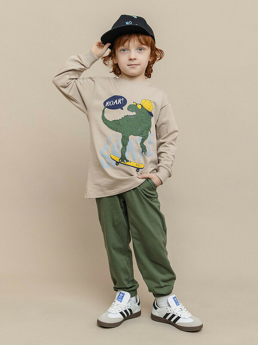 Лонгслив с длинным рукавом для мальчика бежевый.  Стильная и комфортная модель для активных детей и подростков выполнена из высококачественного материала, обеспечивающего максимальную мягкость и комфорт при носке. Принт в виде динозавра.Характеристики:Ткань: Супрем пенье 92% хлопок 8% эластанПроизводитель: batik