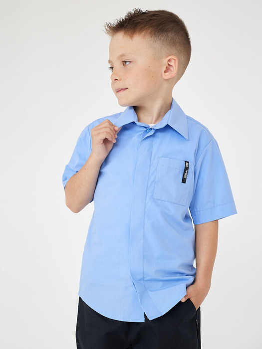 Рубашка голубая для мальчика с длинным рукавом и нагрудным карманом. На спинке складка. Застежка на пуговицы. Классический вариант для школы.Характеристики:Ткань: Сорочечная ткань (60% хлопок, 40% полиэстер)Производитель: batik
