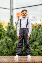 Ветровочные брюки из мембранной, фактурной ткани с дополнительной тефлоновой обработкой. Данный вид обработки предохраняет изделие от загрязнения и лучше отводит влагу. Подклад из 100%  полиэстера - флиса. Область коленей дополнительно усилена деталями из основной ткани. В поясе предусмотрен шнурок для регулировки ширины изделия. Во всех изделиях верхнего ассортимента для безопасности ребенка предусмотрены светоотражающие элементы.
