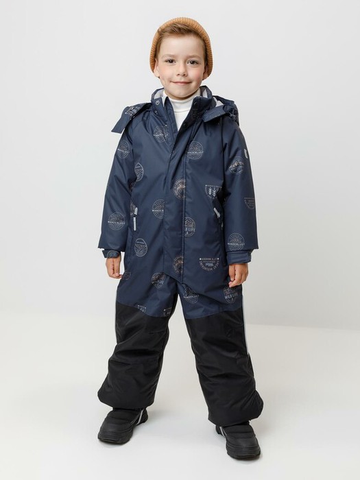 Зимний комбинезон для мальчика с утеплителем SEE®: 250 г/м2 . Выполнен из мембранной ткани с дополнительной тефлоновой обработкой, которая предохраняет изделие от загрязнений и отталкивает влагу. Подклад выполнен из 100% полиэстера Tricot. Комбинезон застёгивается на молнию и внешнюю планку на липучках и кнопках, предусмотрена защита подбородка. Съёмный капюшон имеет эластичную утяжку со стопперами. Резинка по спинке обеспечивает лучшее прилегание. По бокам два кармана на молнии. Эластичные манжеты на рукавах регулируются по ширине с помощью липучки, по низу изделия - с помощью кнопки. Внутренняя противоснежная юбка защищает обувь от попадания снега и удерживает комбинезон в закреплённом положении. В размерах с 98-104 по 116-122 предусмотрены отстёгивающиеся штрипки. Во всех изделиях верхнего ассортимента для безопасности ребёнка предусмотрены светоотражающие элементы.