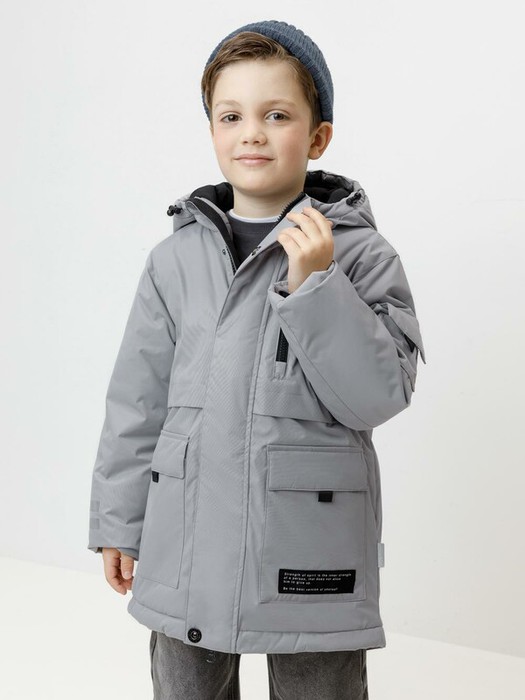 Зимняя куртка для мальчика с утеплителем SEE®: 250 г/м2. Выполнена из мембранной ткани с дополнительной тефлоновой обработкой, которая предохраняет изделие от загрязнений и отталкивает влагу. Подклад выполнен из 100% полиэстера Tricot. Куртка застёгивается на молнию и на дополнительную планку с кнопками. У изделия предусмотрена защита подбородка. Несъёмный капюшон имеет эластичную утяжку со стопперами, глубина капюшона регулируется при помощи липучки. На рукавах внутренние эластичные манжеты. Два накладных кармана с клапанами по бокам и один карман на груди. Во всех изделиях верхнего ассортимента для безопасности ребёнка предусмотрены светоотражающие элементы.