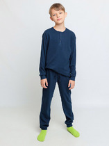 Трикотажная пижама из натурального хлопка. Джемпер с длинными втачными рукавами и брюки с эластичной резинкой в поясе. Мягкие манжеты на рукавах и по низу брюк. Оригинальная набивка выполнена из стойких текстильных гипоаллергенных красителей. Изделие сохраняет цвет и форму после многократных стирок. Все трикотажные полотна производятся в соответствии с нормами швейцарского сертификата ЭкоТекс.