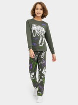 Трикотажный пижамный комплект из натурального хлопка. У джемпера длинные втачные рукава и эластичная мягкая горловина. Брюки с удобным поясом на резинке. Оригинальная набивка и принт выполнены из стойких, гипоаллергенных текстильных красителей. Все трикотажные полотна производятся в соответствии с нормами Швейцарского сертификата ЭкоТекс.