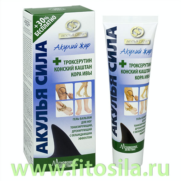 Акулий жир гель-бальзам для ног троксерутин, конский каштан, кора ивы, 100 мл, "