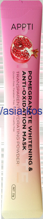 В составе маски гиалуроновая кислота, диатомовая земля, альгинатные водоросли, рисовый экстракт, экстракт граната.
