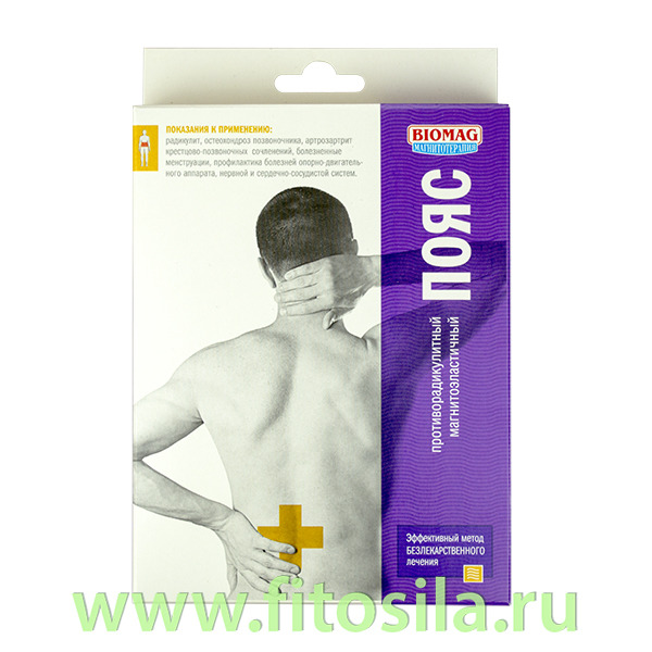 Аппликатор противорадикулитный магнитоэластичный для лечения постоянным магнитным полем поясницы ПМ-01, далее пояс, эффективно используется для лечения и профилактики болезней опорно-двигательного аппарата, нервной и сердечно-сосудистой системы. Применяется в виде самостоятельного безлекарственного метода терапии в амбулаторных или домашних условиях, а также в сочетании с другими физическими или медикаментозными средствами.