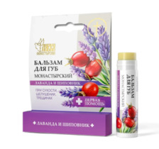 Бальзам для губ монастырский, лаванда и шиповник, пластик, 5 мл, «Монастырская л