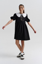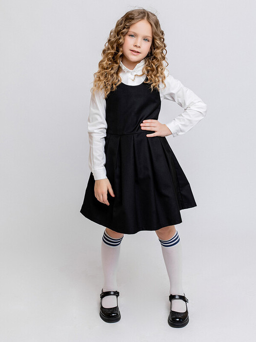 Сарафан для школы черный с боковыми карманами в швах и складками на талии. Круглый вырез позволяет надевать блузки разного стиля. Выполнен из костюмной ткани, состоящей из полиэстера, вискозы и эластана. Характеристики:Ткань:Костюмная ткань полиэстер 77%, Вискоза 19%, эластан 4%Производитель: Batik
