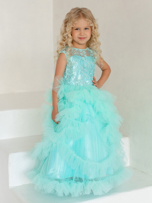 Нарядное платье с пышной юбкой из сетки. Длинное платье в яркой мятной расцветке с цветочным узором на лифе. Подкладка 100% хлопок. Праздничное платье подойдет на выпускной в детский сад и школу. Платье выполнено из мягкого сатина с блестящим топом и пышной юбкой.Характеристики:Ткань верха: Сатин - Полиэстер Сетка - ПолиэстерПодклад 100% хлопокПроизводитель: batik