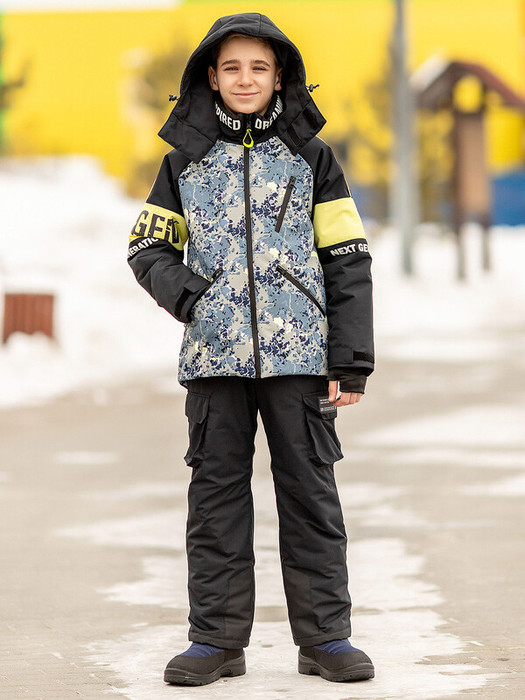 Комплект для мальчика Анри в желто-неоновой расцветке с принтом. Куртка с камуфляжным принтом и яркими неоновыми кантами, вставками и навесами с черным однотоном. Центральная двухзамковая водонепроницаемая молния, а также три прорезных кармана на молниях. Воротник и рукава декорированы термотрансферами. По низу рукавов имеется регулировка с помощью липучки и удобные эластичные манжеты с отверстием под палец. Внутри продуман карман на молнии, утяжка по низу куртки. Брюки имеют эргономичный крой, накладные карманы с клапанами и голографической нашивкой, а также снегозащитные манжеты.  Особенности:  Регулировка объема капюшона  Защита подбородка  Светоотражающие элементы  Гладкая подкладка в рукавах  Гладкая подкладка в брюках  Трикотажные манжеты  Регулировка по низу куртки  Внутренний карман  Снегозащитная манжета  Регулируемые бретели  Светоотражающий декор  Усиление шва и низа брюк Характеристики:Ткань верха: Taslon oxford (мембрана) / Twill poly (мембрана) / Poly reflective Подклад: poly brushed / 210T TaffetaУтеплитель: куртка-270 г/м2, п/к - 120 гр Температурный режим: от -5 до -35СПроизводитель: batik