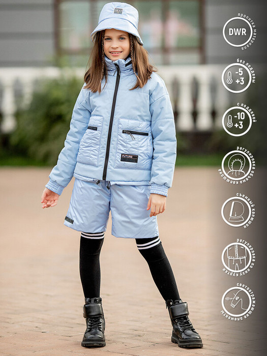 Куртка для девочки Вера демисезонная голубая с утеплителем. Материал с ветро- и водоотталкивающим покрытием. Украшена нашивками с надписями. Съемный капюшон регулируется с помощью шнурка-кулиски со стопперами. Центральная застежка на молнию с защитой подбородка. Особенности: Съемный регулируемый капюшонСпущенная линия проймыКарманы с вертикальной и горизонтальной молниейСовмещение матовой ткани и ткани с металлизированным эффектомРегулировка по низуСветоотражающие элементыЭластичные манжеты рукавов Характеристики:Ткань верха: Twill stretch (мембрана) Подклад: T/CУтеплитель: 150 гр Температурный режим от +10 до -5 СПроизводитель: batik