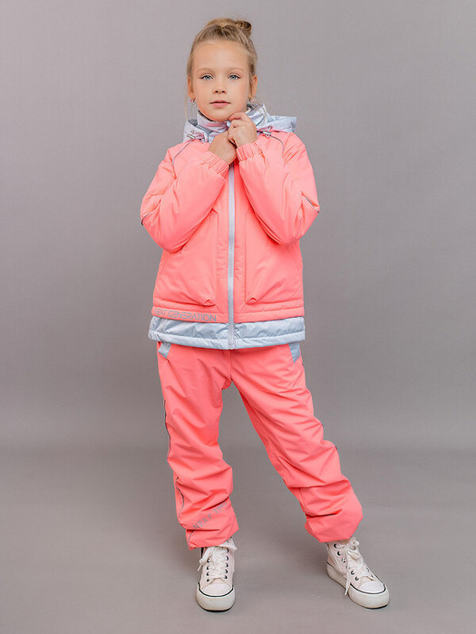 Комплект САНДРА для девочки розовый из мембранной ткани. Куртка на утеплителе 100, брюки без утеплителя с подкладкой из мягкого ворсового трикотажа. Подкладка спинки, полочки, верхней части рукава и внутренний воротник из мягкого ворсового трикотажа. Куртка с рукавами кроя реглан для более свободных и комфортных движений и с иммитацией двойного низа для ощущения укороченной куртки. Центральная застёжка на молнию с внутренней ветрозащитной планкой и защитой от защипа подбородка. С воротником и съёмным капюшоном на кнопках. Объёмные накладные карманы на магнитах. Низ рукавов и низ брюк - манжеты с эластичной тесьмой. Пояс брюк на задней половинке стянут эластичной тесьмой. Брюки с ремнём из стропы. Светоотражающие элементы: кант в пройме полочек, подрезе спинки, термотрансферы на спинке, по низу правой полочки и по кругу на правой половине брюк.  Особенности:  Пропитка материала DWR Регулировка объёма капюшона Съемный капюшон Регулировка по низу куртки Светоотражающие элементы  Капюшон и низ куртки с регулировкой Характеристики:Ткань верха: мембрана Подклад: Poly brushed Утеплитель: 100 - куртка, Брюки без утеплителя на Poly brushed Температурный режим от +3°С до -10°СПроизводитель: batik