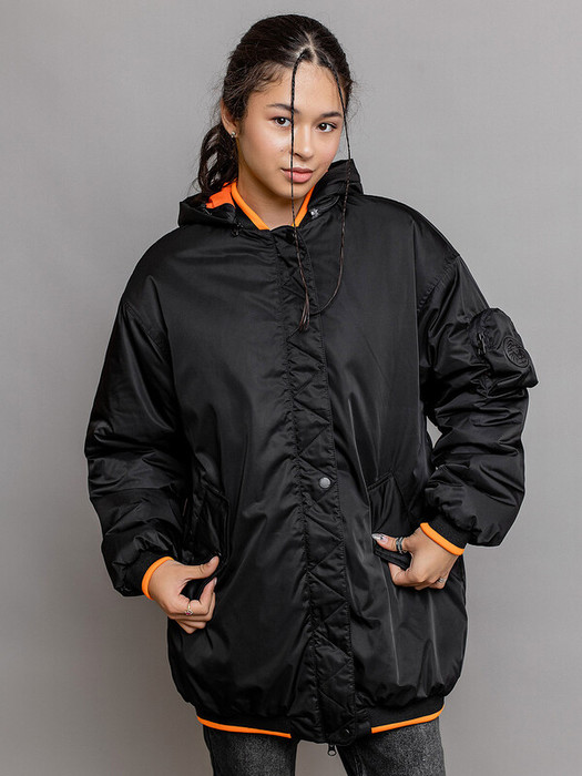 Совместные покупки Уфа Детская одежда Ветровки и дождевики — Batik Бомбер для девочки удлиненный Смэш (635-24в) 635-24в-1 Черный/ярко-оранжев