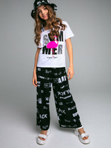 Детские брюки-палаццо свободного кроя. Спереди складки, боковые карманы. Классическая застежка "гульфик". Можно носить с отворотом пояса.Характеристики:Ткань: хлопок 60%, полиэстер 40%Производитель: batik