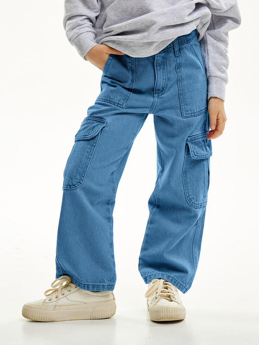 Стильные джинсы cargo свободного кроя с классическим вареным эффектом. Плотный  деним из 100% хлопка. Помимо двух накладных карманов спереди и сзади есть большие накладные карманы с клапаном на обеих брючинах. Шлевки для ремня, застежка на молнию и пуговицу спереди. Пояс с внутренней регулируемой резинкой для моделей до 140 размера. Удобные актуальные джинсы в универсальном синем цвете для расслабленных повседневных образов.Характеристики:Ткань: 77% хлопок 22% полиэстер 1% эластанПроизводитель: batik