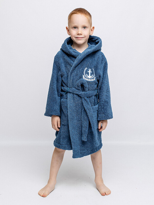 Халат махровый для мальчика цвета индиго с нашивкой на груди. Большой капюшон, глубокие карманы и удобный пояс. Детский халат сшит из двухсторонней, хорошо впитывающей влагу, приятной махры. Мягкий и комфортный халатик на каждый день.Характеристики:Материал: Махра двухсторонняя, 100% ХлопокПроизводитель: batik