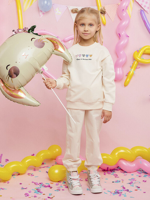 Комплект детский трикотажный в бежевой расцветке: джемпер и брюки. Стильный, уютный спортивный костюм бренда batik станет отличным дополнением базового гардероба девочек и мальчиков. В состав комплекта-двойки входят свитшот и брюки. Свитшот с эластичными манжетами и принтом в виде надписи и сердечек на груди. Брюки однотонные с резинкой по низу и боковыми карманами.Характеристики:Ткань: Футер 2х нитка 100% хлопокПроизводитель: batik