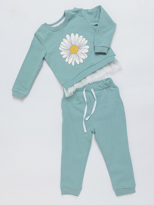 Комплект для девочки из футера в мятной расцветке: свитшот и штанишки. Костюм для малышей и новорожденных теплый из натуральной хлопковой ткани с красивым принтом. Штанишки на резинке, с эластичными манжетами. Свитшот с рисунком в виде ромашки и декором по низу.Характеристики:Ткань: Футер 2х нитка 100% хлопокПроизводитель: batik