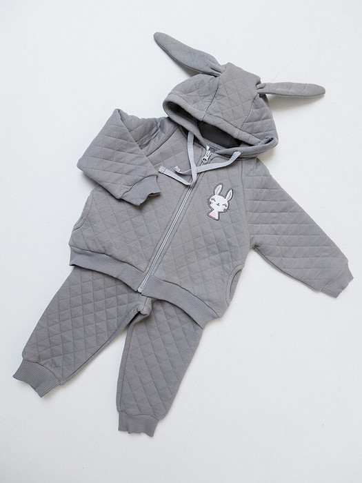 Комплект из капитония детский серый: толстовка и брюки. Костюм спортивный подойдет для мальчика и девочки. Толстовка с длинными рукавами на манжете и на застежке-молнии. Милые ушки на капюшоне и нашивка на толстовке.Характеристики:Ткань: Капитоний 80% хлопок 20% полиэстерПроизводитель: batik