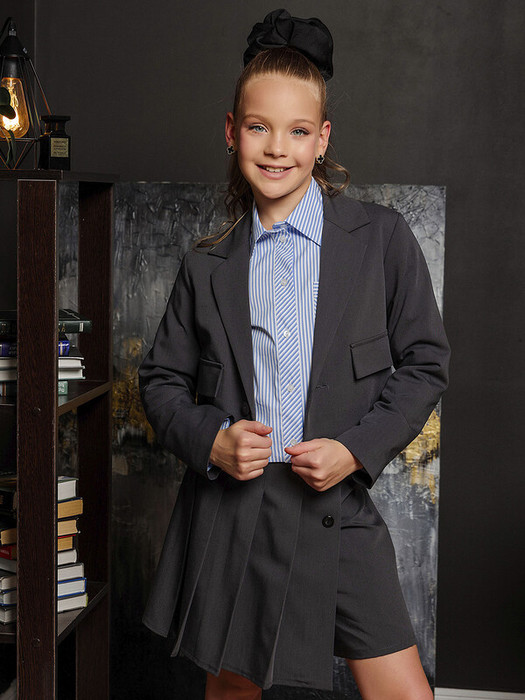Жакет укороченный на подкладке для девочки. Застежка на одну пуговицу, рукав двушовный эргономичный. Два кармана с клапаном, костюмный воротник. По низу декоративный элемент из сорочечной ткани.Характеристики:Ткань: хлопок 60%, полиэстер 40%Производитель: batik