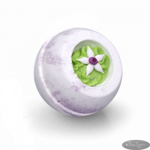 Состав: сода пищевая, лимонная кислота, соль, крахмал кукурузный, масло какао, масло ши, парфюмерная композиция, сахар, краситель пищевой. Не содержит нерастворимых в воде элементов декора.