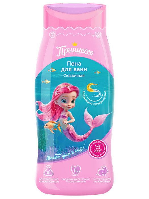 Состав пены адаптирован для детской кожи и богат натуральными экстрактами и активными компонентами, благодаря чему кожа Принцессы получает особый уход и защиту.